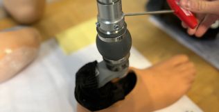 Après analyse et mesure, les orthèses plantaires sont réalisées directement sur le pied du patient qui repart les semelles aux pieds.